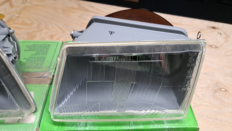 New old stock: set of SEV Marchal H4 headlights for Peugeot 309 phase 1 cars.